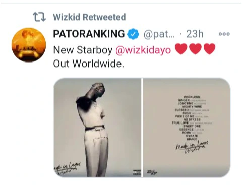 Wizkid said nothing, I mean, he has said nothing about it. Despite the fact that he has been online since yesterday, he has failed to reply Davido, or at least acknowledge Davido's tweet. Musicians like;