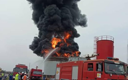 Fire on Thursday gutted a tank farm in the Oando Depot on Gaskiya Road, in the Ijora Badia area of Lagos State.