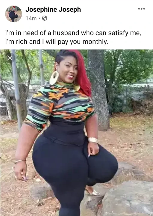 I'm in need of a husband who can satisfy me, I'm rich and I will pay you monthly - Facebook lady