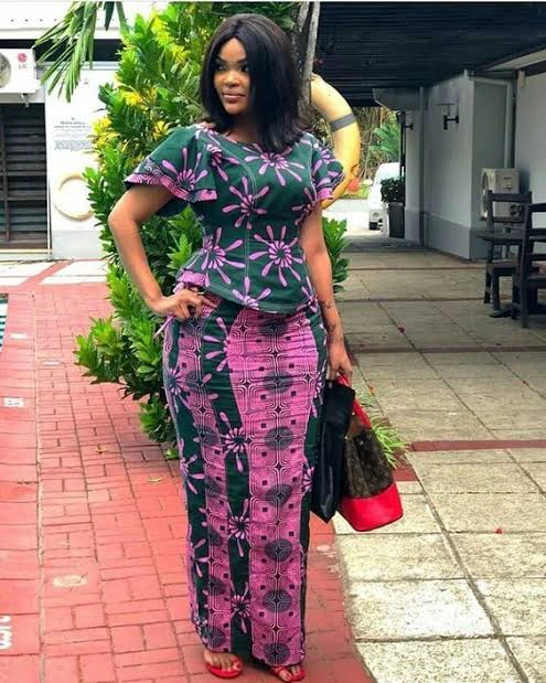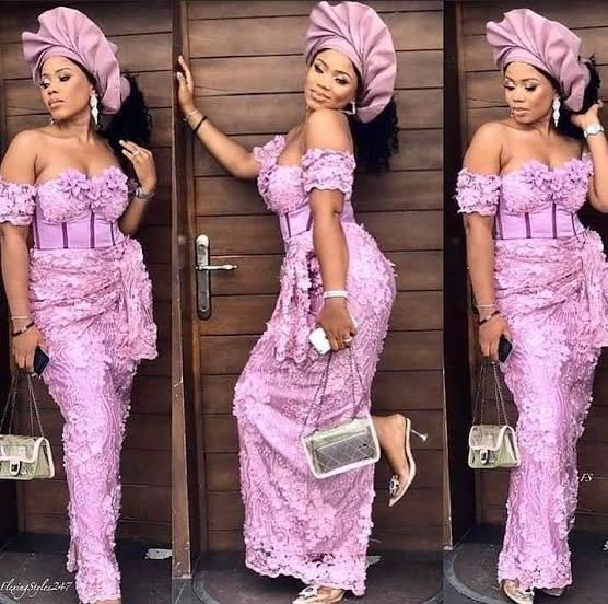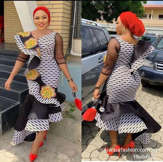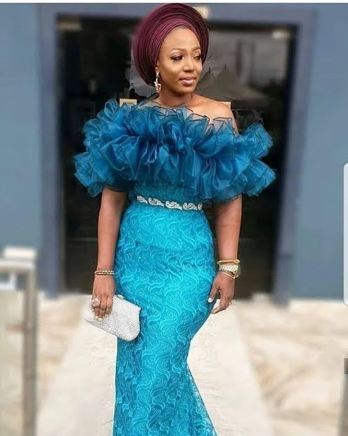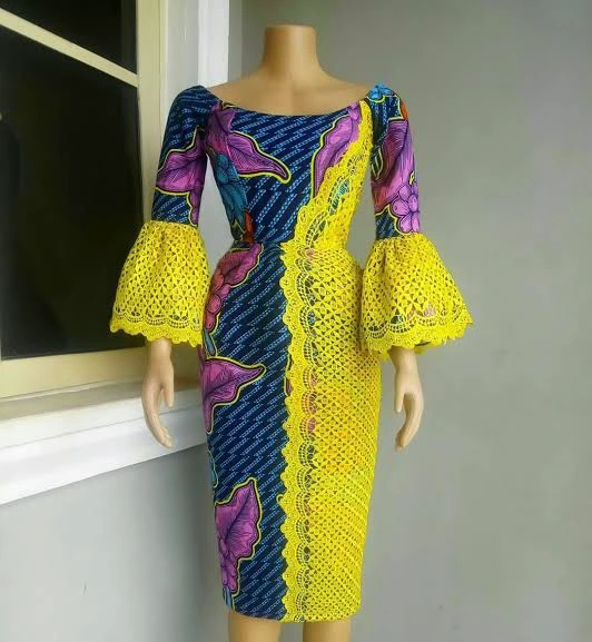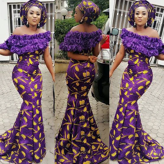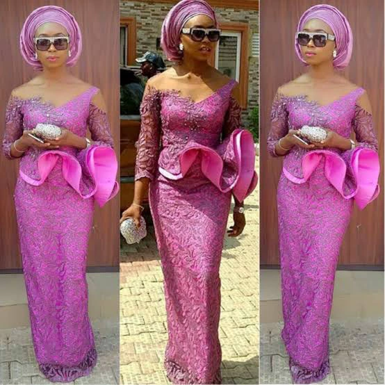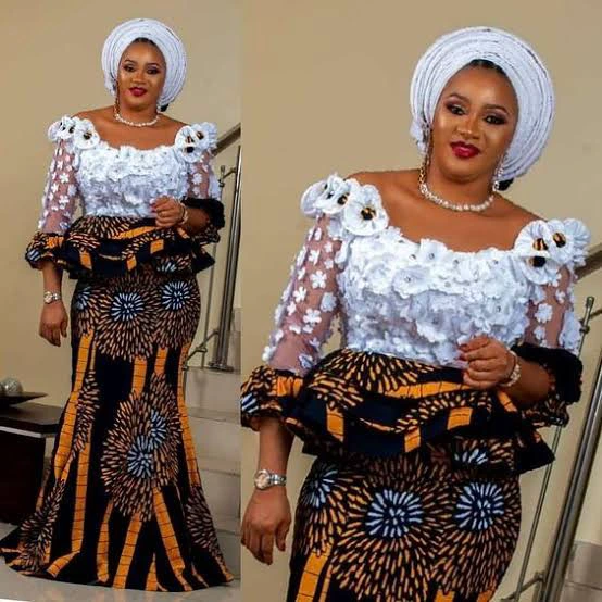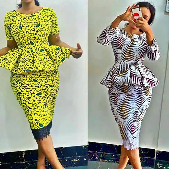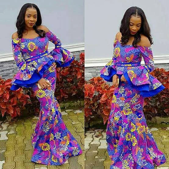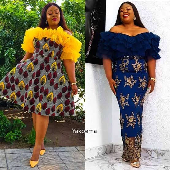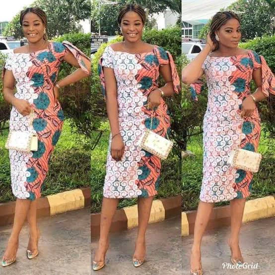 There are diverse styles now that can be rocked, a skirt and a blouse, peplum tops, straight skirt, flare skirts, off-shoulders, short gowns, and so on. All these and more are the ways you can style your style clothing materials. One important thing you won't take out when it comes to being colorful is your complexion. What do I mean your complexion influences the color of the material you will wear. For instance, if you are a dark-skinned person, you will make the dress colorful if you wear bright colors like wearing a yellow color, a white color, etc. And if you are a light-skinned person, you won't need to wear something too light because your complexion will complement the dress. So you can wear something like blue, not a light blue color but like the sky blue color. So my advice is to pick a color that will complement your complexion. Be sure you will look colorful. The pictures below prove that every lady will look good when they wear a gorgeously designed lace or Ankara. Enjoy.
