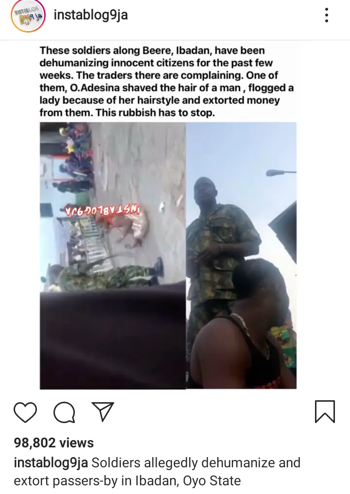 The person who Shared the video said it happened in Oyo state, in the city of Ibadan and the solider punished the girl simply because of hairstyle. Could you imagine such kind of maltreatment?, who is the concern of a solider man I'd a lady Plait braided her hair in red colour.