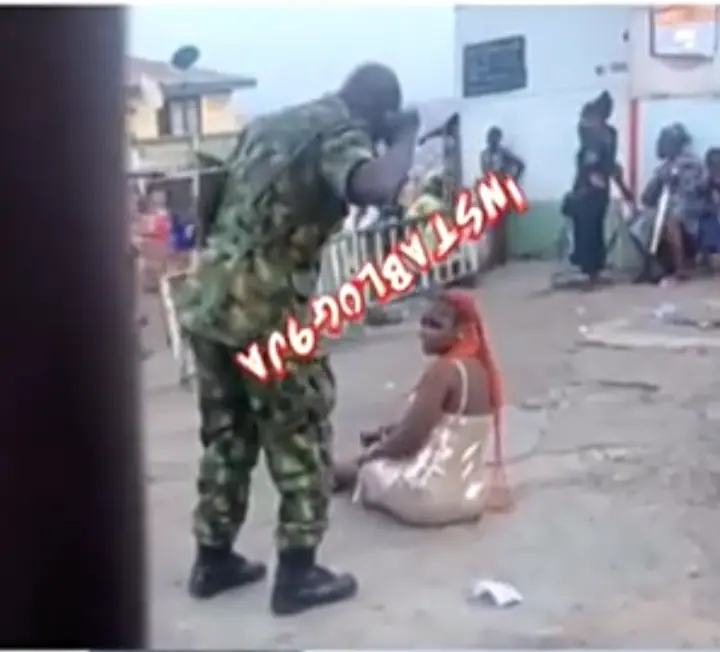 Is This Not Wickedness?, See The Reason Why A Soilder Beat Up A Lady In The Street (Watch Video)